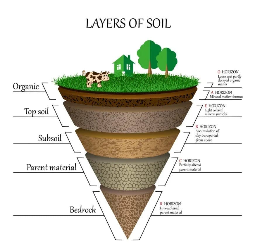 Topsoil is crucial for growing our food as it’s where nutrients are delivered to plants, where water is soaked up, where sunlight helps plants grow, and where microbiology interacts with the plants.